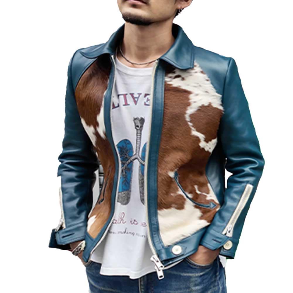 Veste Grizzly en Cuir Véritable Veste en Cuir Veste Grizzly Taille L Viridian VALLET05VG [Liugoo Leathers] Homme