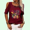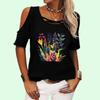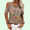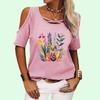 Haut à col rond tendance pour femme, T-shirt d'été à épaules dénudées, T-shirt décontracté à manches courtes et imprimé floral