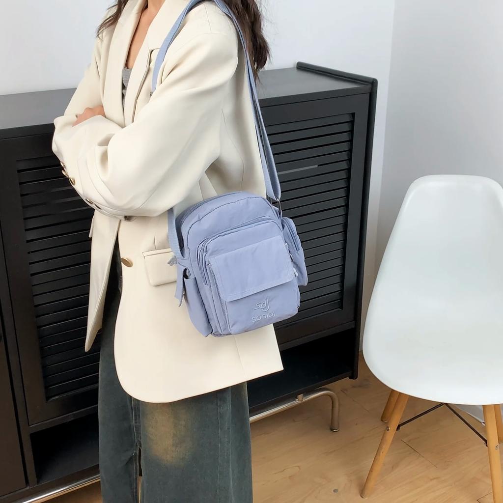 Sac Carré Petit en Nylon Imperméable Sac Léger pour Téléphone Portable pour Femmes Sac Bandoulière Commuter Multi-Poches