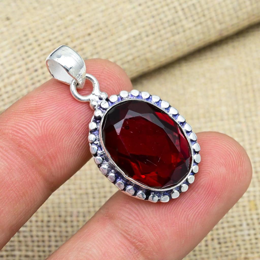 Grenat Rouge Pierre Précieuse Argent Sterling Massif 925 Fait Main Bijou Antique Cadeau Pour Mère Pendentif