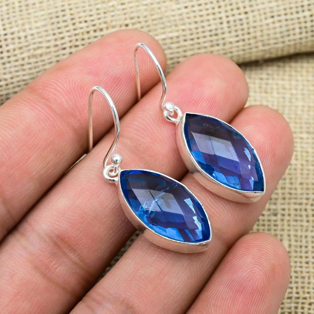 Pierre précieuse Tanzanite Fait à la main Bijoux en argent sterling 925 Boucles d'oreilles boho pour cadeau de mariage
