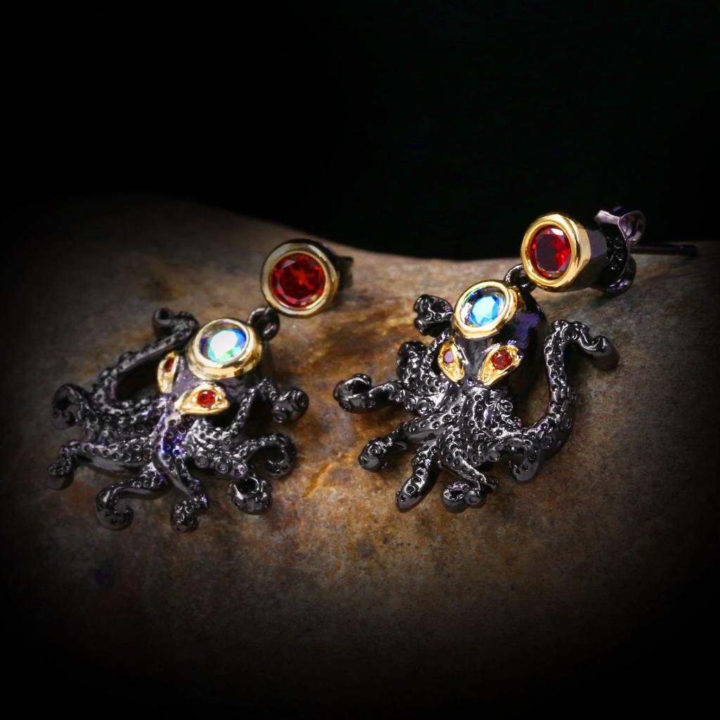 Bague Femme Luxe Léger Cuivre Plaqué Or Pieuvre Noir Gun Boucles d'oreilles Accessoires de Mode et de Beauté Boucles d'oreilles