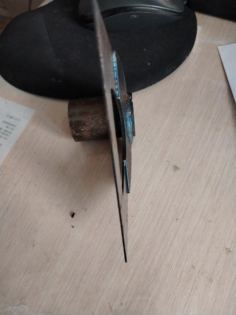 La houe n'est pas affûtée et est soudée en 2 endroits.