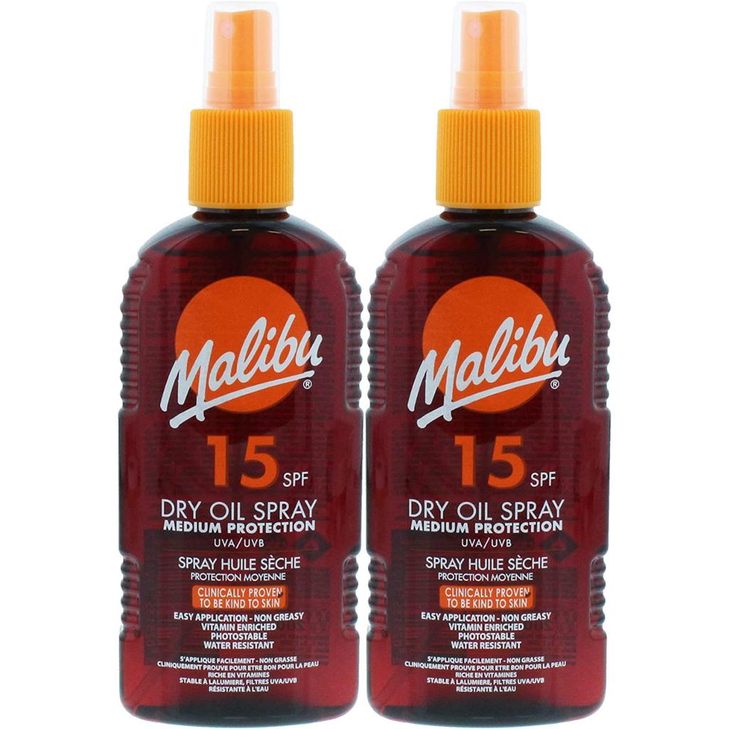 Malibu Dry Oil Spray SPF15 Bronzing Tanning Oil 200ml x2 pcs