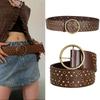 Ceinture Américaine Rétro Street Creux Anneau PU Cuir Épissage Caractéristique Ceinture de Taille Clou Perle Tendance