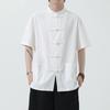 Cette chemise pour homme est dotée de poches pratiques de chaque côté pour ranger des effets personnels.. Fabriqué en coton et lin respirants, il est confortable à porter avec un pantalon de costume, un pantalon décontracté ou un jean. La fermeture boutonnée chinoise ajoute une touche de style vintage.
