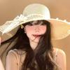 Chapeau de soleil d'extérieur, Femme, Bord ondulé, Chapeau de paille avec nœud en dentelle, Chapeau de soleil, Style vacances, Plage, Chapeau de soleil de bord de mer