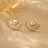 Natural Shell Earrings Women'S Retro Pearls Medieval Vintage Stud Earrings Semi-Round Exaggerated Personality High-End Earrings