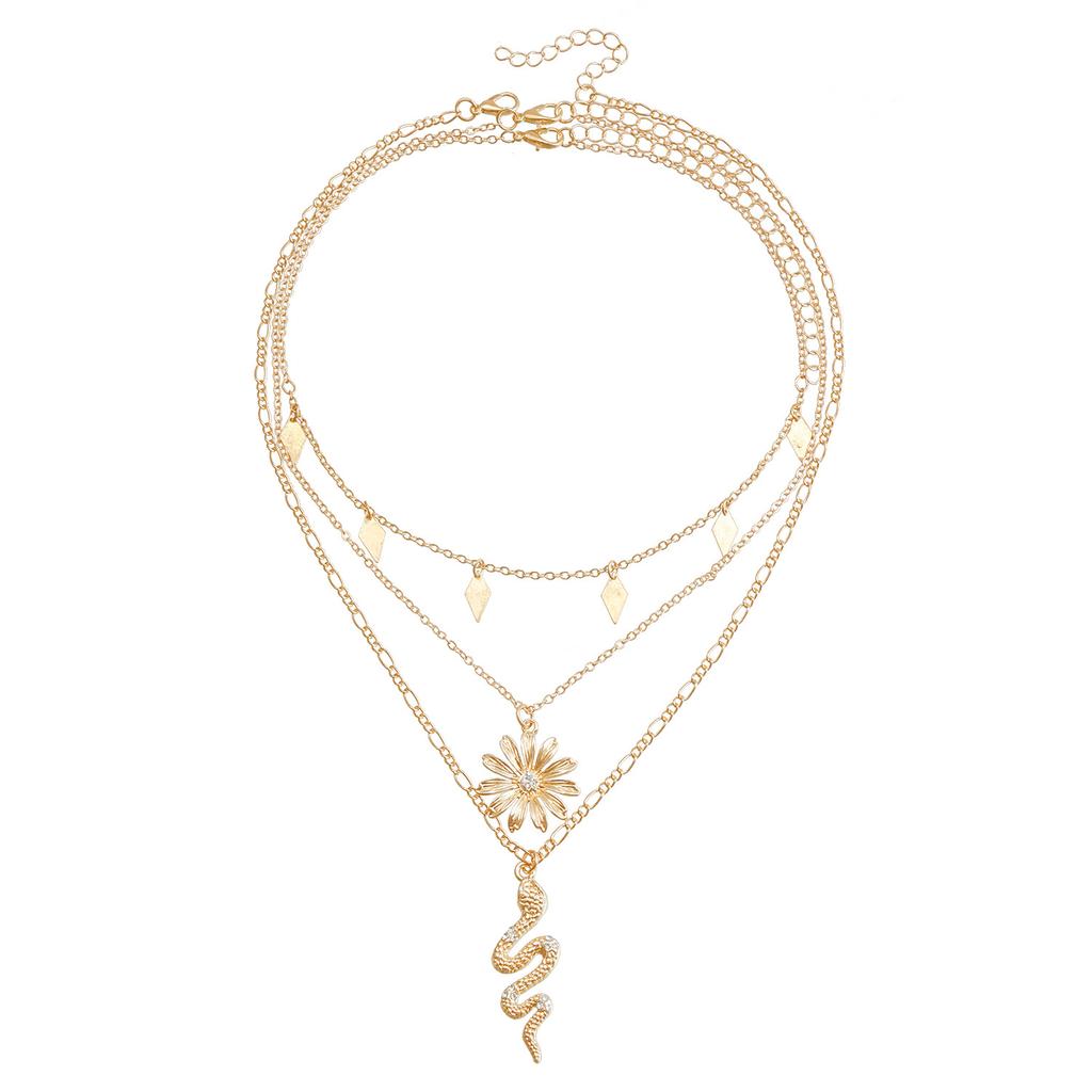 Accessoires Bohème Tournesol Losange Pendentif Serpent Chaîne Clavicule Collier Multicouche Luxe Léger
