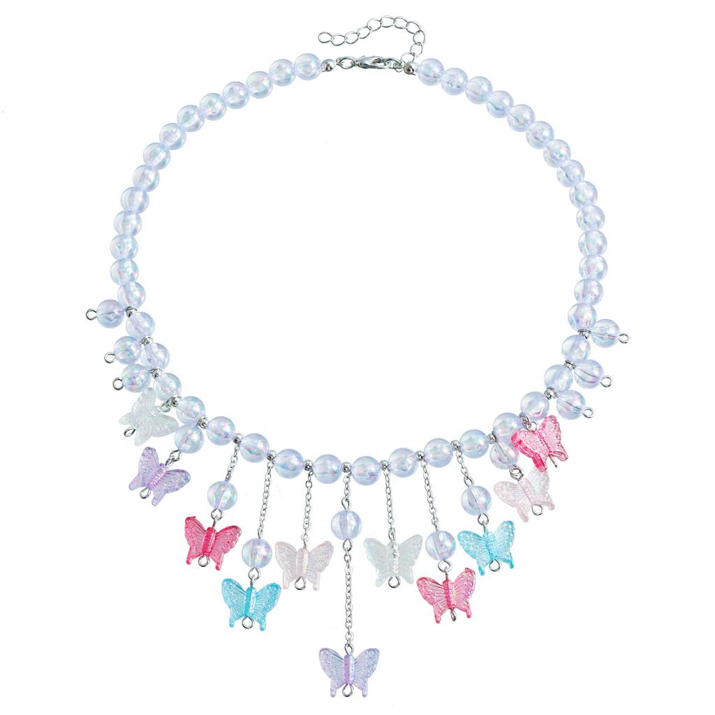 Jewelry Color Beaded Women'S Necklace Butterfly Pendant Temperament Chain Tassel Beach Women'S Necklace