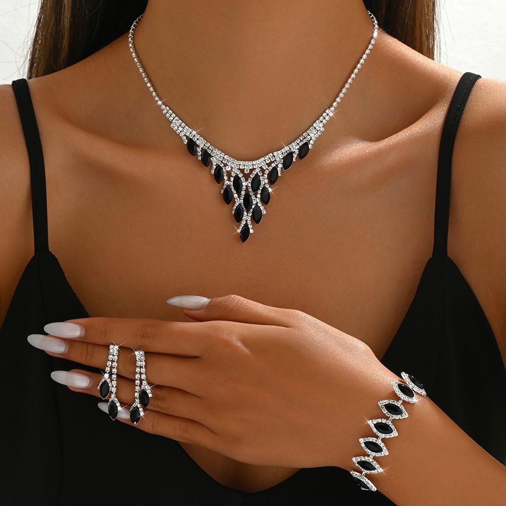 Ensemble Mariage Cristal Diamant Complet Collier Boucles d'Oreilles Bracelet Exquis Haut de Gamme Accessoires Collier de Robe