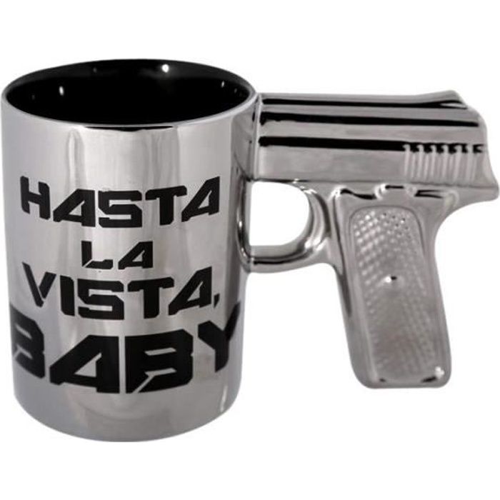 Tasse - terminator - slogan culte - poignée pistolet - céramique argentée - 50 cl