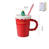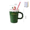 Mug de Noël Créatif Arbre de Noël Mug à Eau en Céramique Haute Apparence Tasse en Céramique Horizontale avec Paille Couverte Avec Main Cadeau YLE035