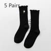 5 Pairs of Female Spring and Summer New Solid Color Wooden Ear Embroidery Roll Edge In The Tube Pile Socks