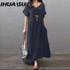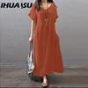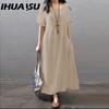 IHUASU Robes décontractées pour femmes, mode été printemps, couleur unie, imprimé, manches courtes, col en v, taille haute