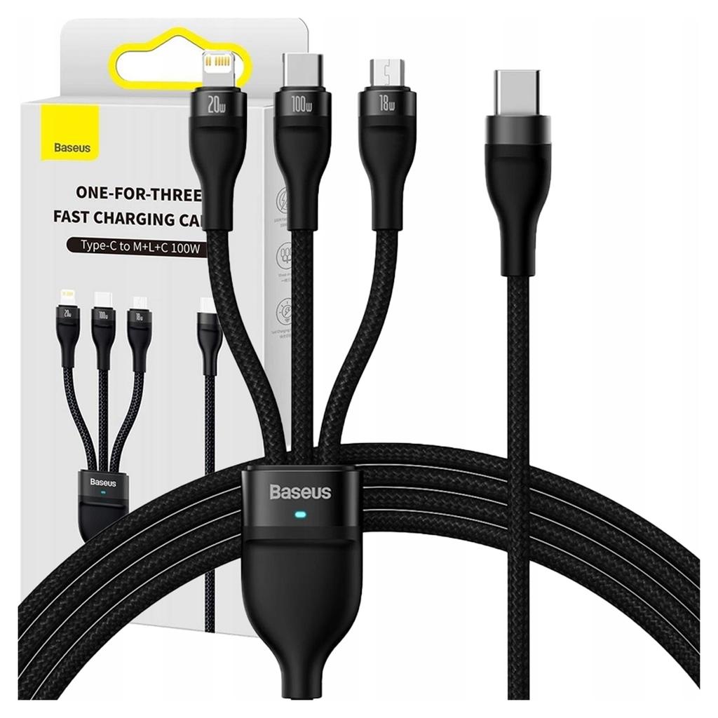 Kabel USB 3w1 Baseus Flash Series 2, USB-C + micro USB + Lightning, 100W, 1.5m