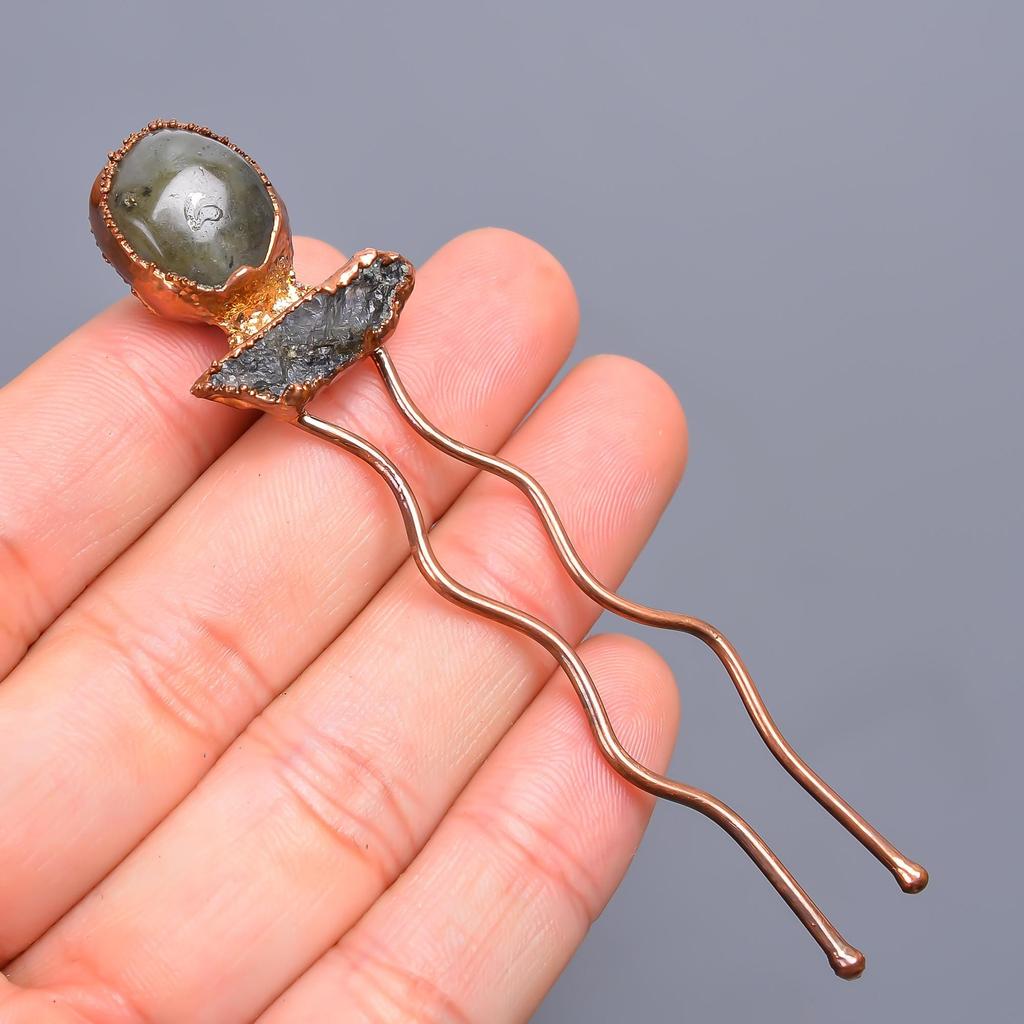 Bijoux faits main en labradorite naturelle Plaqué cuivre Bâton de chignon 3,4"/Cuivre électroplaqué Rempli d'or Épingle à cheveux Cadeau Black Friday pour fille