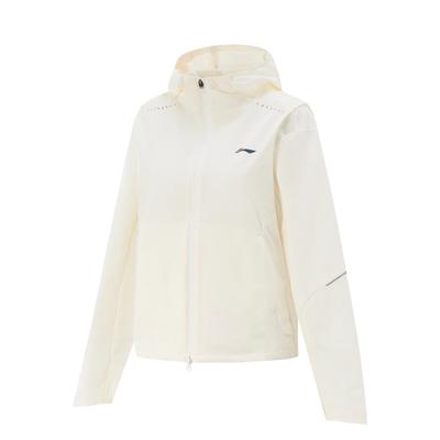 Li Ning Série Fitness Couleur Unie Logo Décontracté Ample Veste de Sport à Capuche Femmes vestes Blanc Cassé AFDS014-6