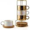 Tasse à Espresso en Porcelaine avec Soucoupes et Support en Métal - Tasses à Espresso Démitasse Empilables en Céramique 6 Onces - Ensemble Tasses à Cappuccino