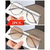 2PCS Transparent Photochromic Oval Glasses Women's Stainless Steel Frame PC Material Fashionable Metal Chain