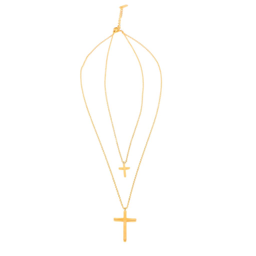 Cross Necklace Titanium Steel Simple Double Layers Gloosy Comfort Sweater Necklace for Belief Gold