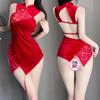 Sex underwear velvet and lace charming cheongsam sex underwear sexy dew ditch perspective suit women