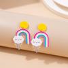 Boucles d'oreilles acryliques poupée de dessin animé géométrique colorée avec fleurs et étoiles arc-en-ciel