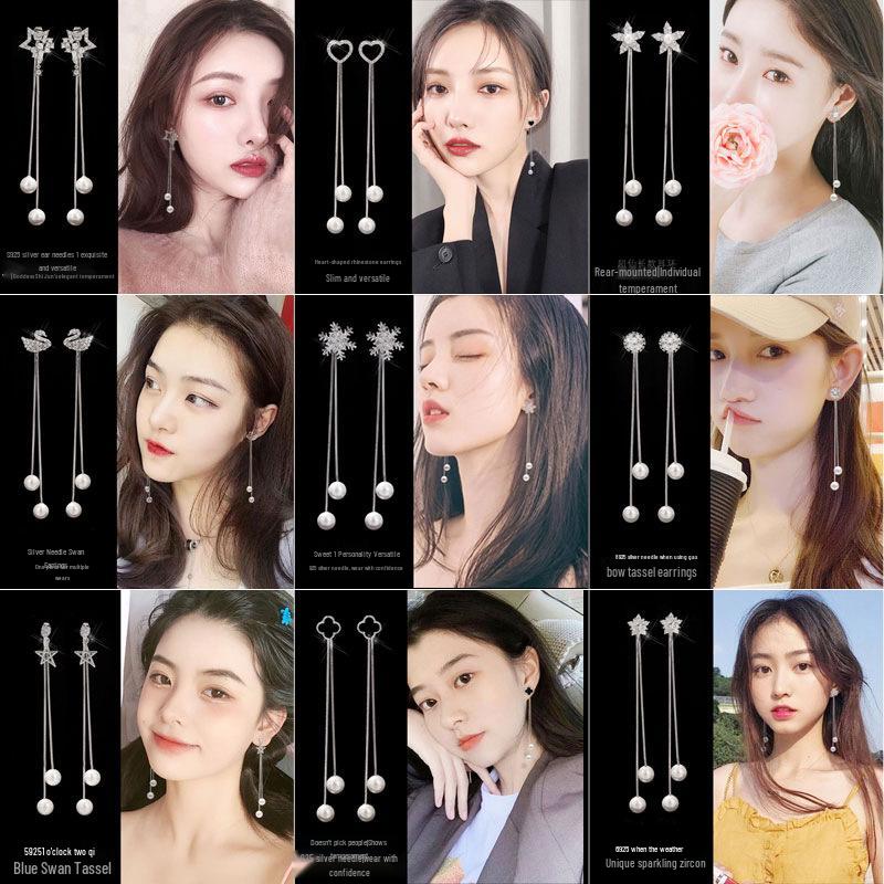 Korean Style Asymmetrical Pearl Tassel Earrings with S925 Silver Needle