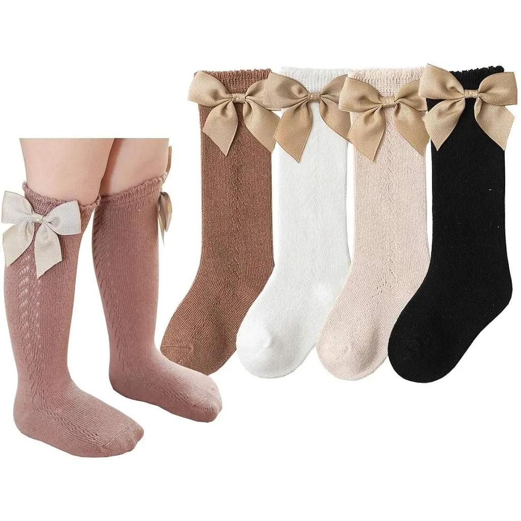 Chaussettes hautes en coton pour bébé fille de 0 à 7 ans, couleur unie, nœud papillon, fines, printemps et été