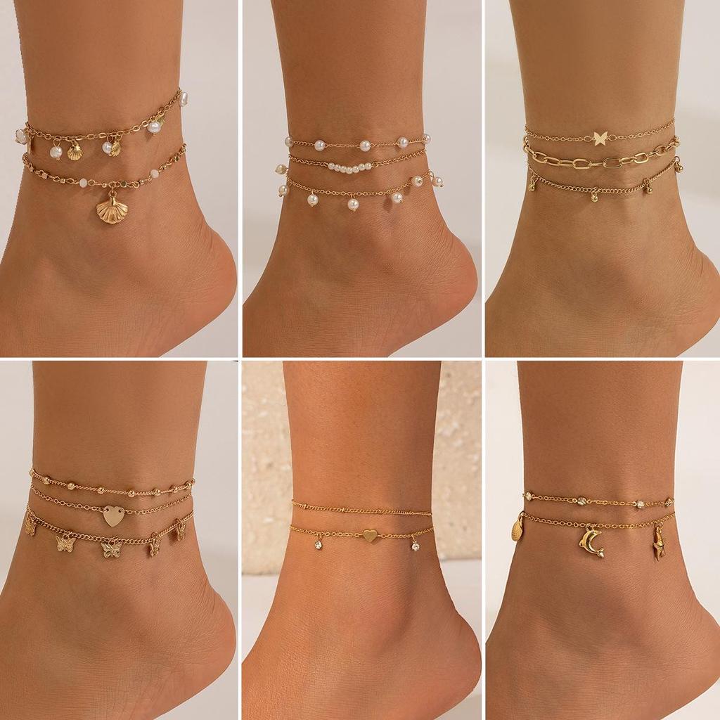 Cheville de Plage Style Océan Étoile de Mer & Papillon avec Perles d'Imitation et Coquillages
