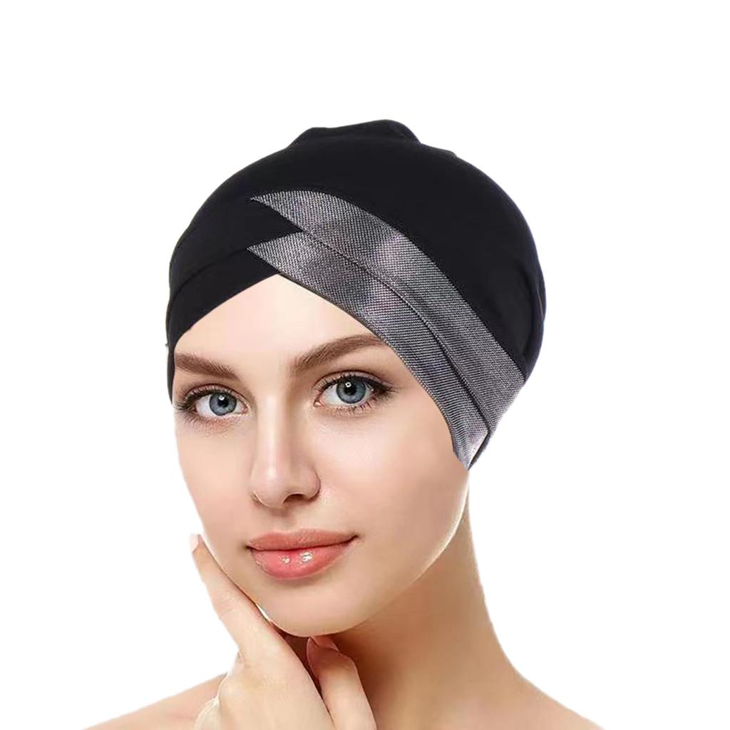 Stretch Fabric Shiny Thread Front Cross Indian Hat Crystal Linen Headscarf Muslim Base Layer Cap