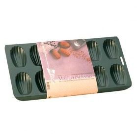 Patisse plaque à madeleine antiadhésif en acier revêtu - 12 cavités - 40x19 cm - noir