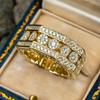 Bague alliance homme en acier Damas doré de 8 mm incrustée de feuilles d'or, adaptée à un engagement quotidien.