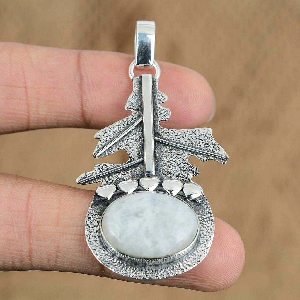 Cadeau de mariage pour elle Pendentif en argent 925 Pierre gemme Pierre de lune arc-en-ciel naturelle