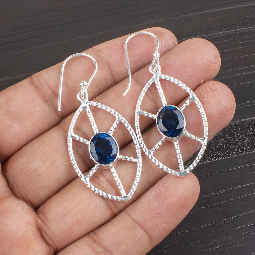 Bijoux Topaze Bleue de Londres, Boucles d'oreilles en Argent Sterling Massif 925, Belles Boucles d'oreilles en Argent Faites Main, Boucles d'oreilles Attractives en Pierre Précieuse Topaze Pour Cadeau