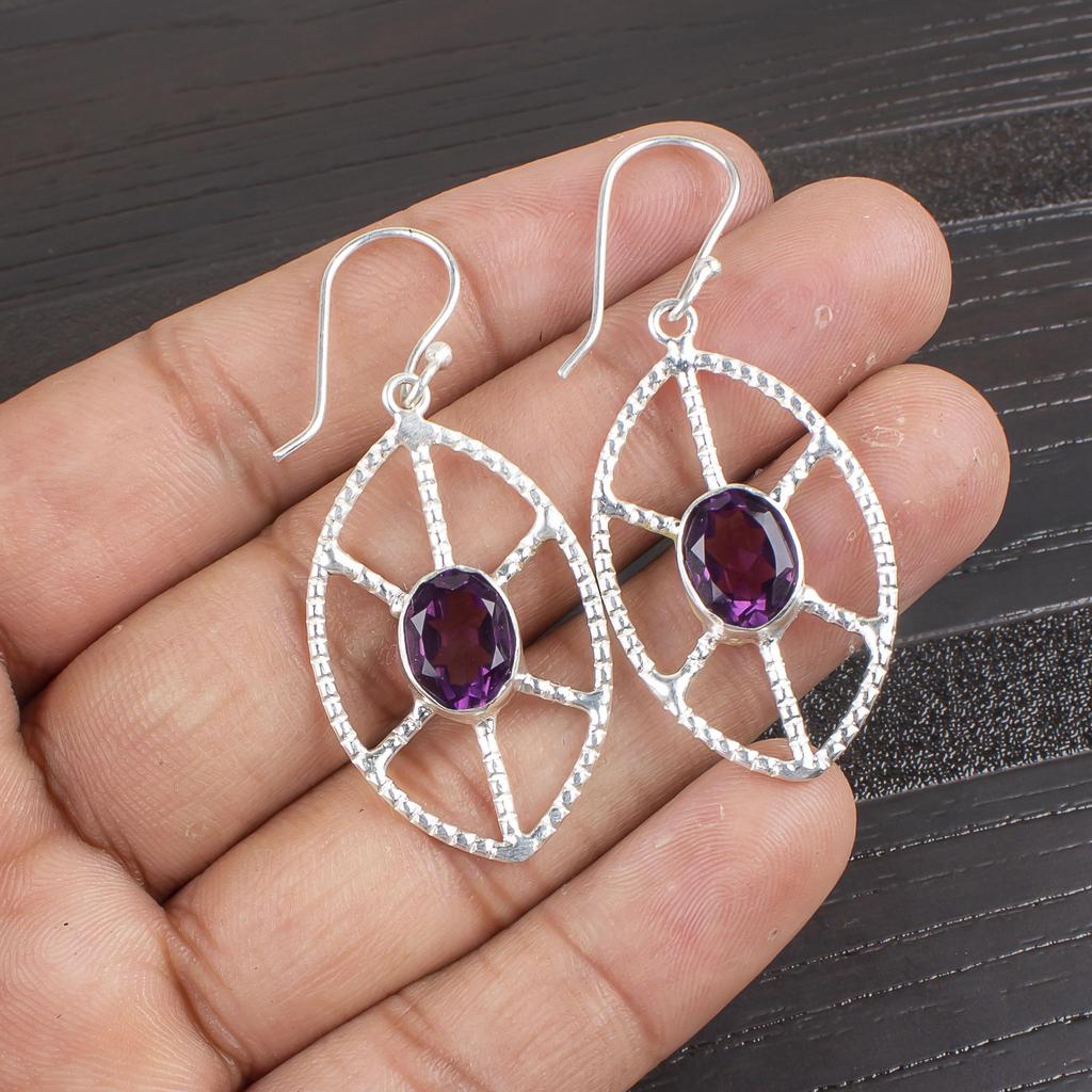 Bijoux en Améthyste Africaine, Argent Sterling 935, Boucles d'oreilles en argent magnifiques faites à la main pour cadeau de Thanksgiving