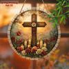 Élégant Carillon Éolien Métal Croix Rotative 2D - Design Lever de Soleil Serein avec Lys & Colombes, Moulin à Vent Pliable Fabriqué à la Main pour Décoration Extérieure Festive