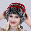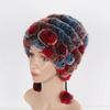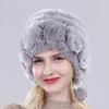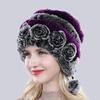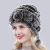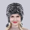 Hot Sale Winter Women Flowers Striped Natural Real Rex Rabbit Fur Hats Lady Warm Knit Genuine Fur Caps Russian Outdoor Fur Hats