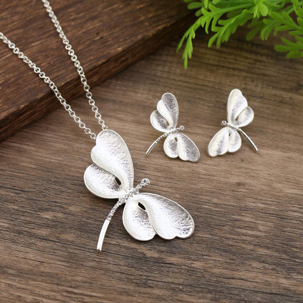 New enamel butterfly stud earrings pendant set, women's personalized high-end butterfly necklace