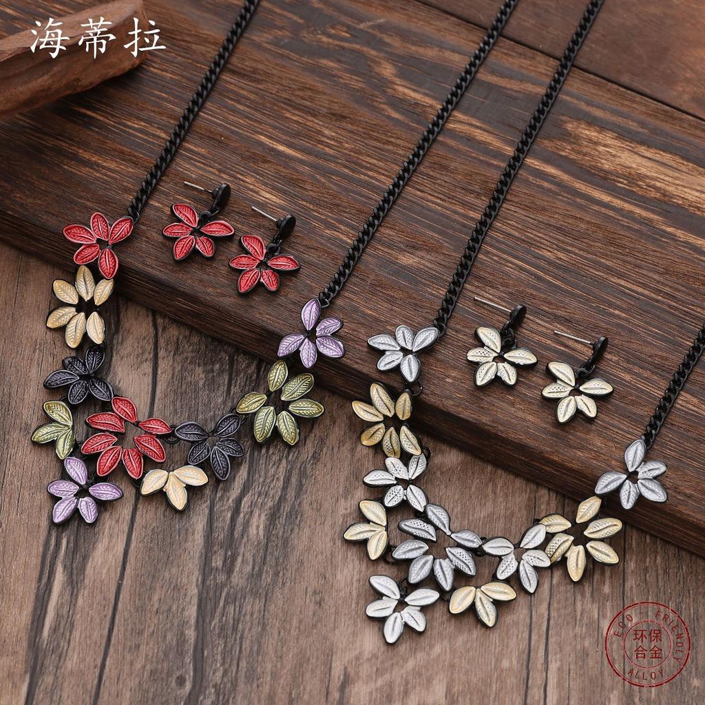 Colored Leaf Earrings Necklace Set Leaf Coarse Necklace Earrings Necklace Women's Jewelry Set
