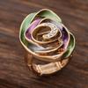 New color painting oil geometric hollow diamond flower elastic ring, high-end women's versatile ring