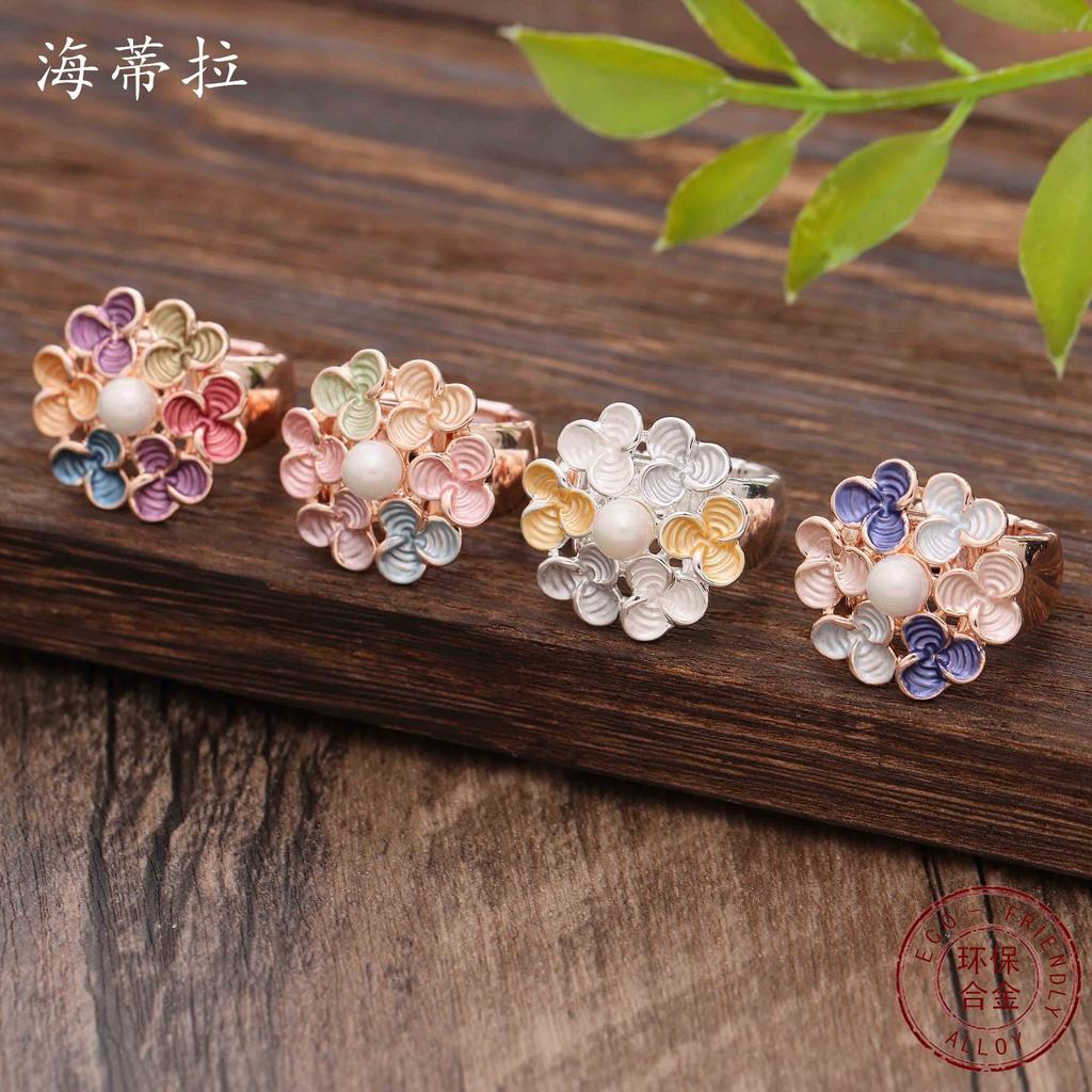 Bague fleur trèfle huile de couleur, bague élastique polyvalente pour femmes fleur colorée