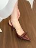 Pointed bow high heel bag head sandals women's shoes spring and summer temperament socialite black single shoes