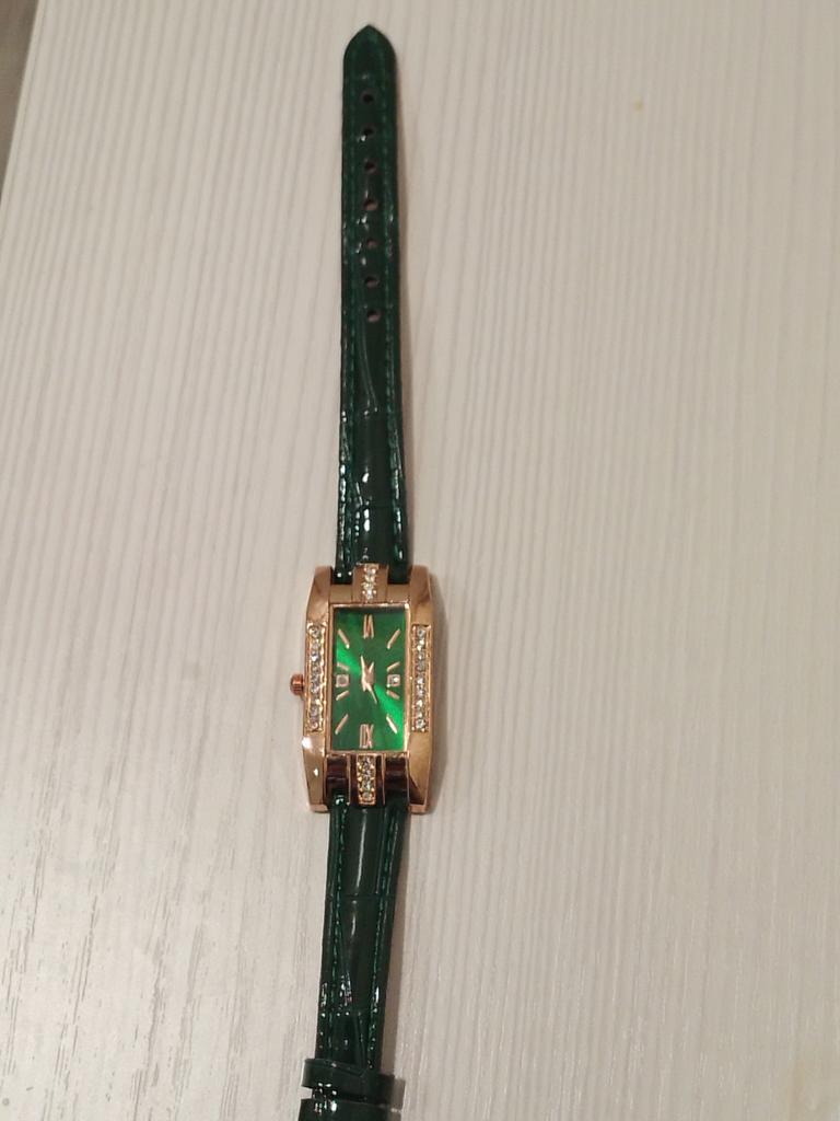 Montre ordinaire avec strass. Le bracelet est bon, la couleur comme sur la photo. La montre sur l'image est plus intéressante. Pour l'instant, je ne comprends pas comment la remonter. Je ne l'aurais pas prise en magasin, elle a l'air trop simple.