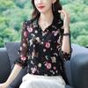 Chemise imprimée à manches 3/4 pour femmes, style coréen printemps/automne, flatteuse et jeune, chemise en mousseline couche de base