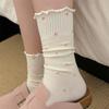 Femme Printemps et Automne Adorable Pois Doux Dessin Animé avec Logo en Tissu Chaussettes Montantes Tube