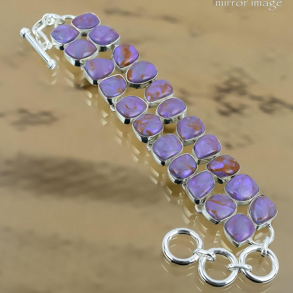 Gift For Women Chain Adjustable Bracelet 925 Silver Natural Purple Turquoise
