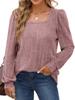 Chemisier à rayures pour femmes, col carré brossé, mode lanterne, manches longues, haut, printemps et automne