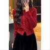 2024 Spring/Autumn Korean Design Battle Robe Red Sweater: Slimming, Stylish Knitted Cardigan