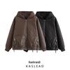 2024 Autumn Women's European & American Style Faux Leather Hooded Sweatshirt Coat